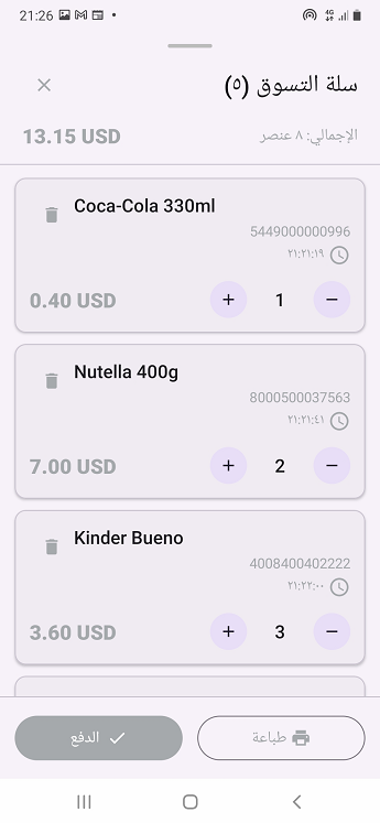 يضيف التطبيق المنتجات واحدة تلو الأخرى تلقائيًا دون أي تدخل من المستخدم، وذلك بمجرد تمريرها أمام الكاميرا في شاشة المسح.